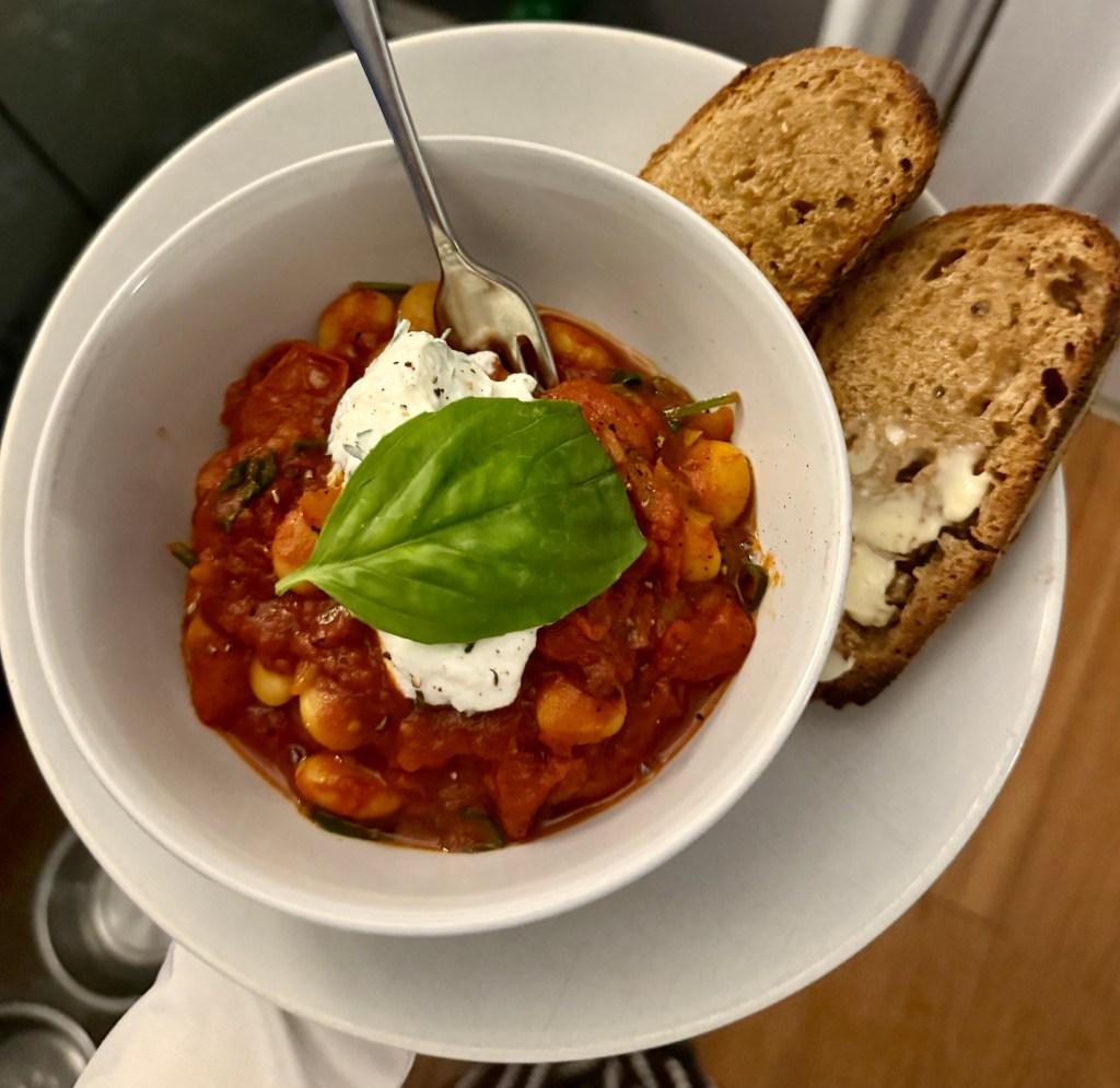 - Once you’ve put your beans in a bowl, top with some of your ricotta mixture